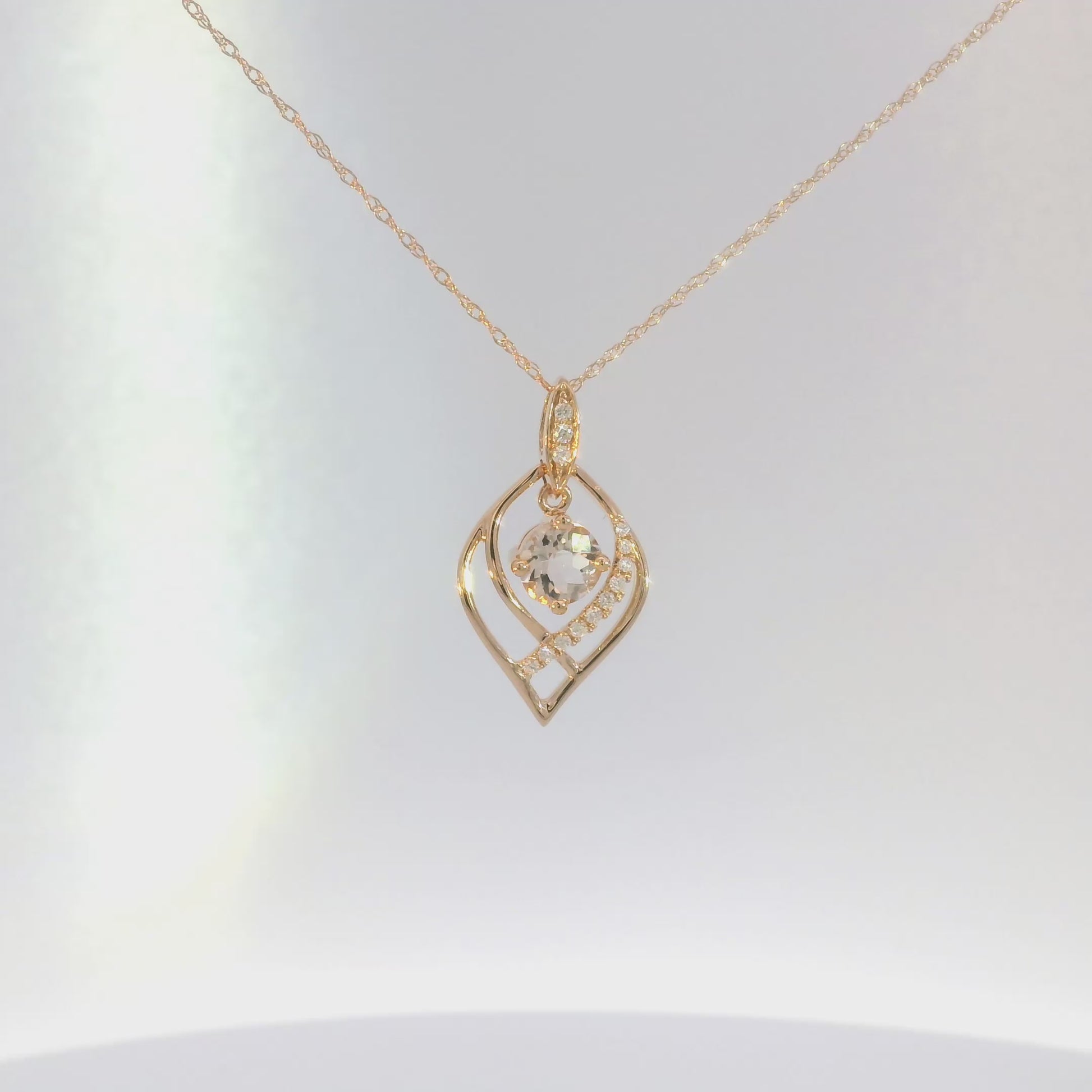 This stunning blush Morganite and diamond necklace features high-quality natural Morganite and sparkling diamonds, all set in 14 karat rose gold. The round-cut Morganite and diamond accent bail add a touch of elegance and sophistication. Available as a pendant-only or complete with our 18" GlimmerThin Chain, this necklace is a must-have for any jewelry lover. Elevate any outfit with the luxurious and eye-catching beauty of the Amara Morganite & Diamond Necklace.
