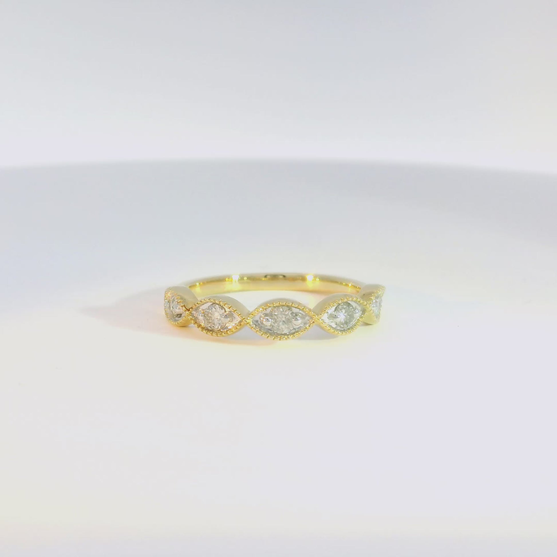 A timeless diamond ring . The intricate design of scalloped edges and milgrain beaded accents is beautifully complemented by the sparkle of 1/4 carats of natural white round, brilliant-cut diamonds. Each diamond is set in 14 karat yellow gold, making this ring truly timeless. Stack it with other rings or let it glimmer on its own.