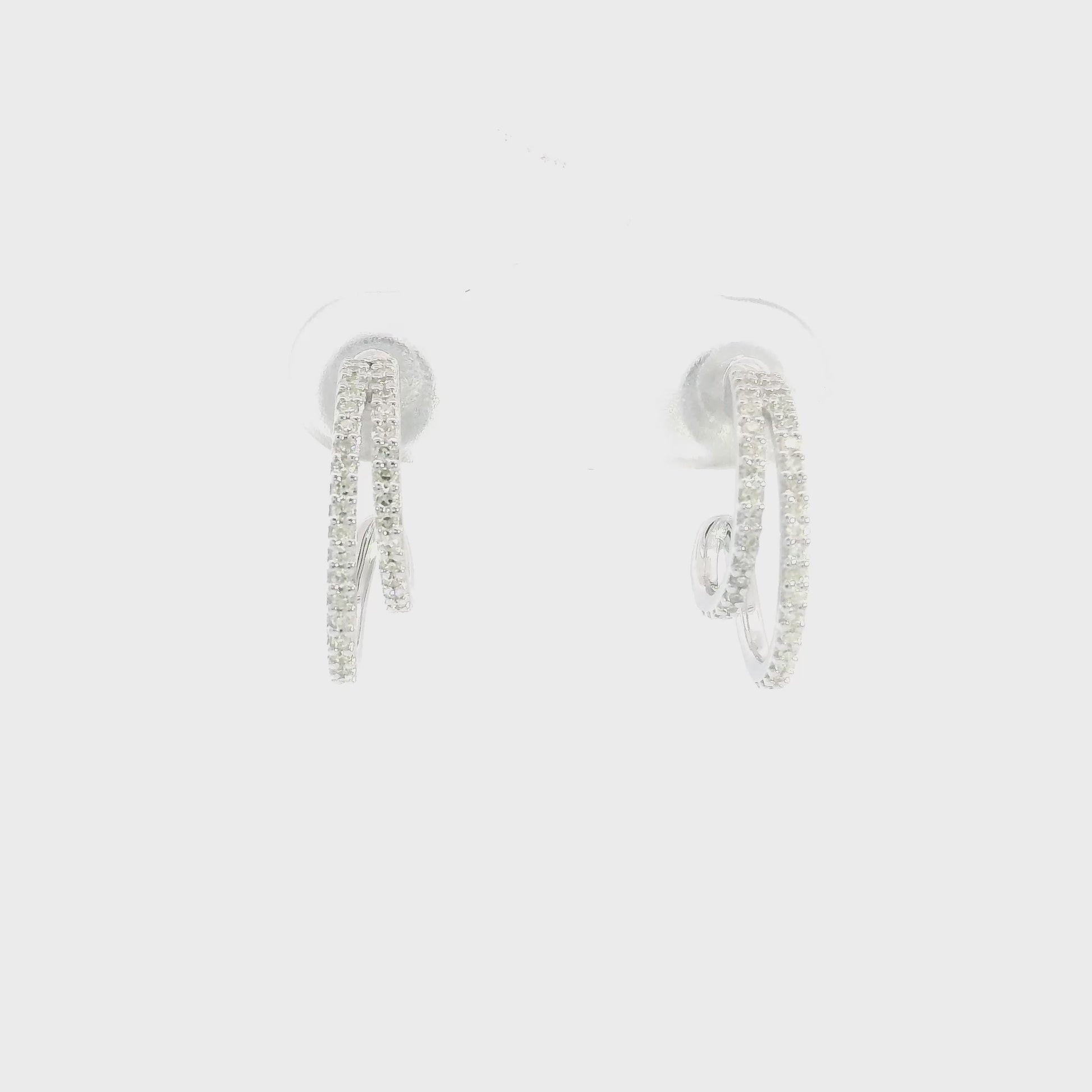 The Katya Double Diamond Huggies provides the chic appearance of a double or stacked ear styling without the commitment of an additional piercing. A cascade of diamonds drapes the ear to give a shimmery effect to your day-to-day look. This easy-to-style earring has a post and butterfly clutch earring back for safe wearing anywhere, all the time.