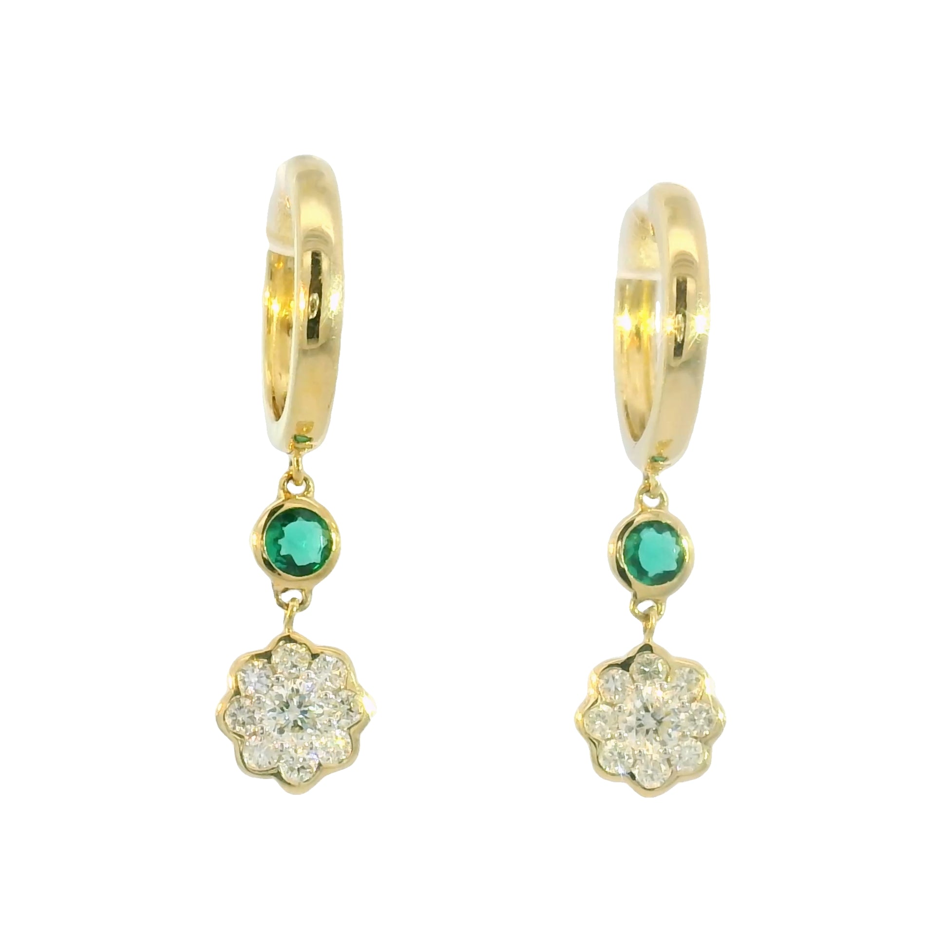Say hello to timeless charm with the Liora drop earrings. Yellow gold adorned with lush emeralds and brilliant diamonds, these earrings bring subtle elegance and refined sparkle to your jewelry rotation.