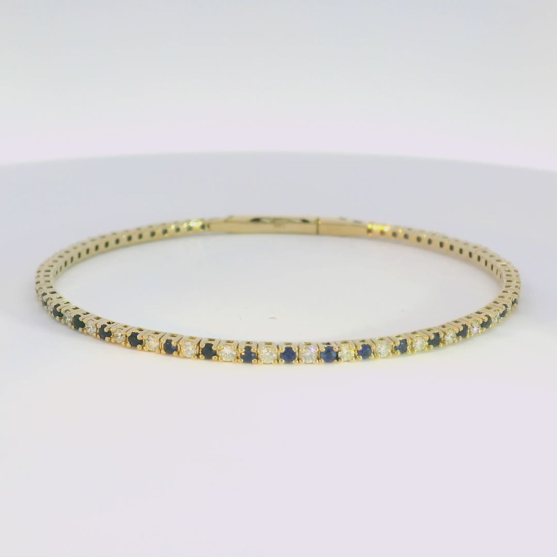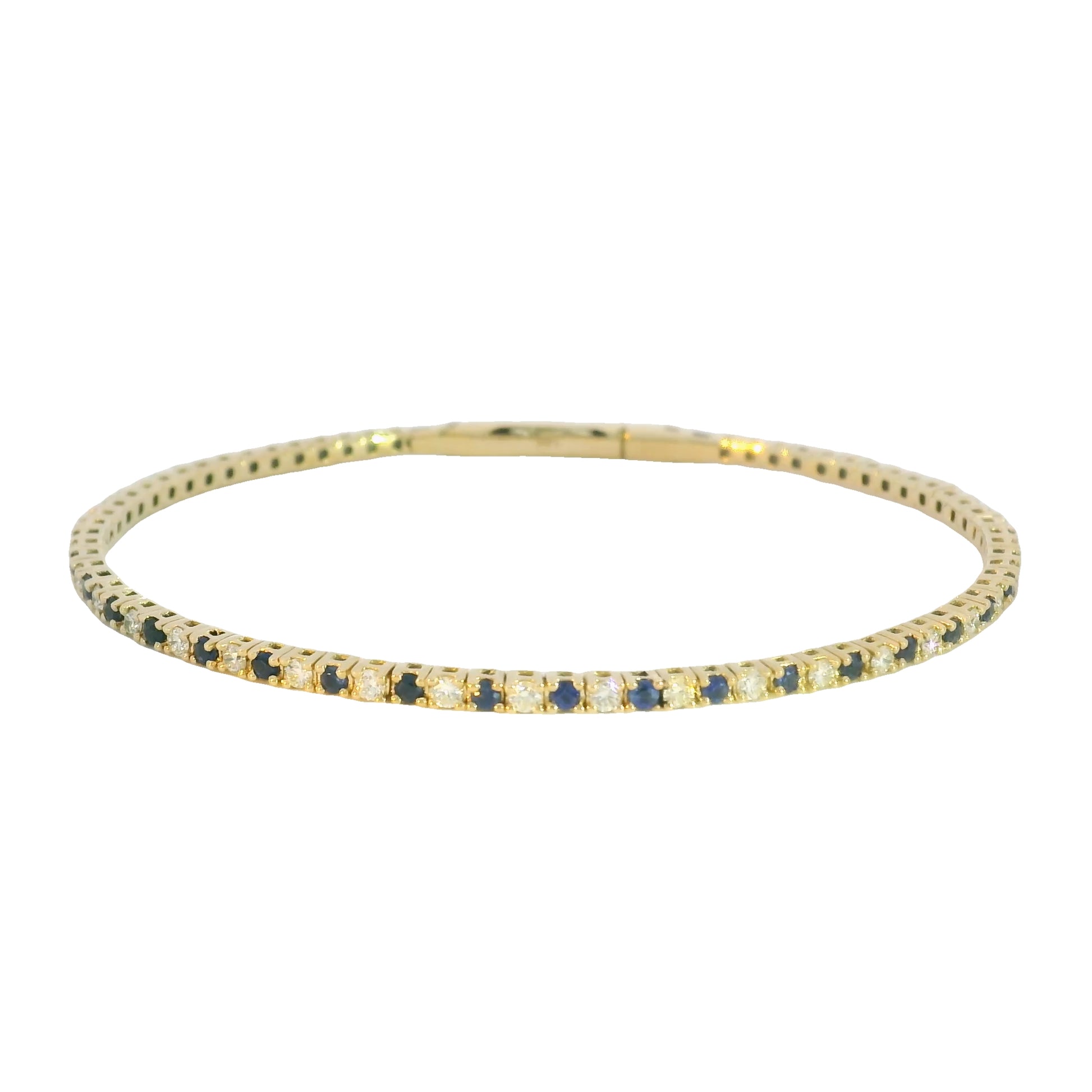 From coffee runs to cocktail hour, the Milena bangle adapts effortlessly. Crafted from 14k yellow gold with sapphires and diamonds, it’s all about low-key brilliance.