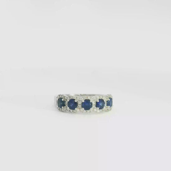- Approximately 4/5 carat in sapphire and 1/4 carat in diamonds total weight