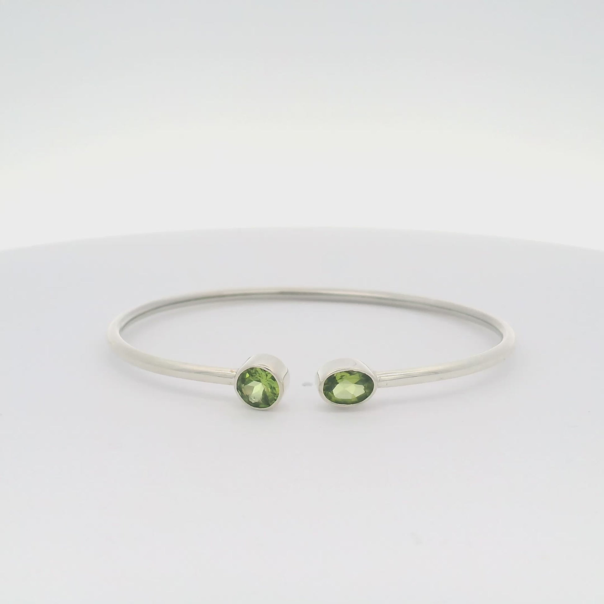 Indulge in a candy-inspired wrist treat with this Something Sweet Peridot Flexi Cuff. Made with natural poppy green Peridot, this sterling silver cuff boasts a unique comfort-fitted design and bezel-set gemstone stones for a quirky and stylish touch. Perfect for adding a pop of color to any outfit, you won't be able to resist wearing this playful cuff all day long. (Warning: May cause sudden cravings for sweets.)