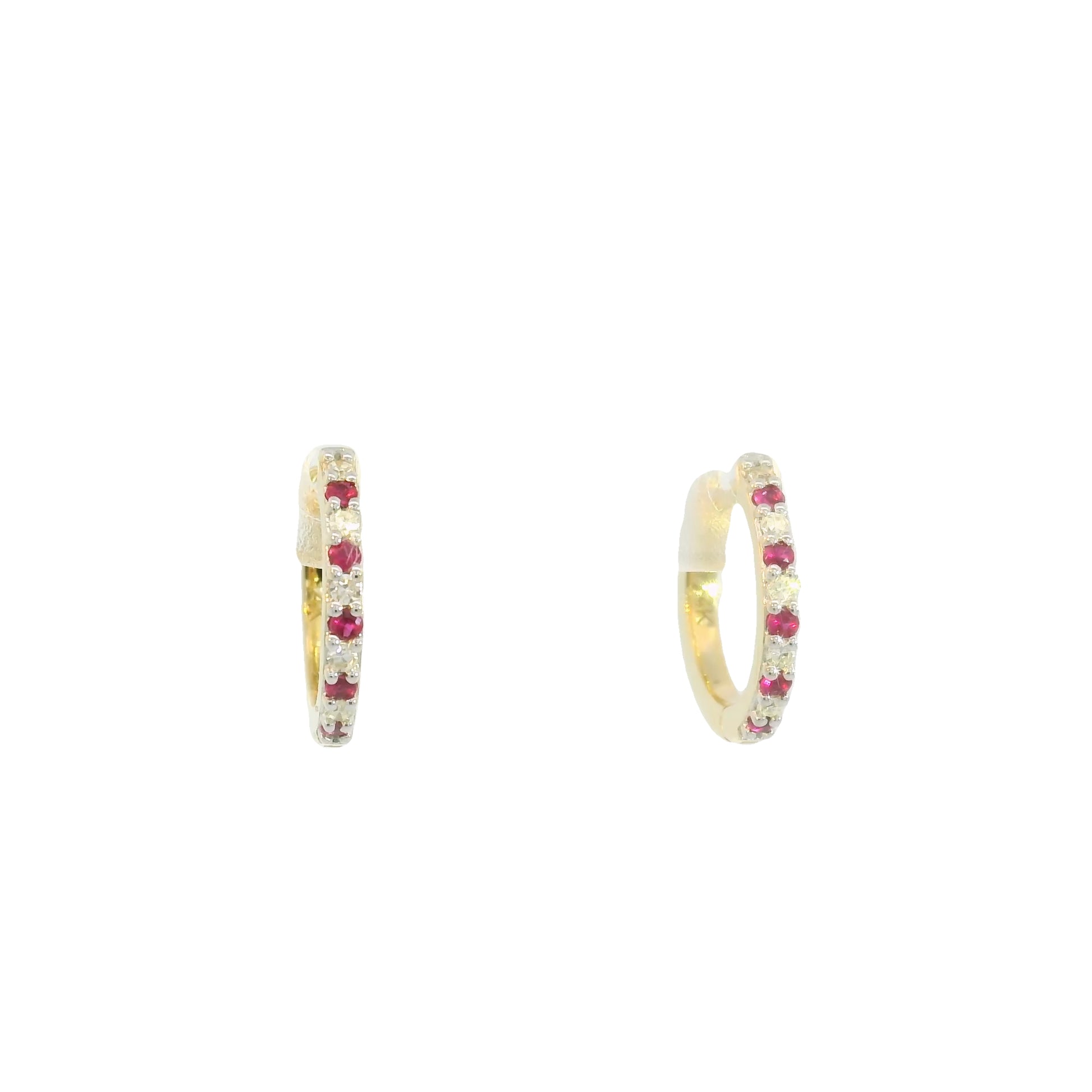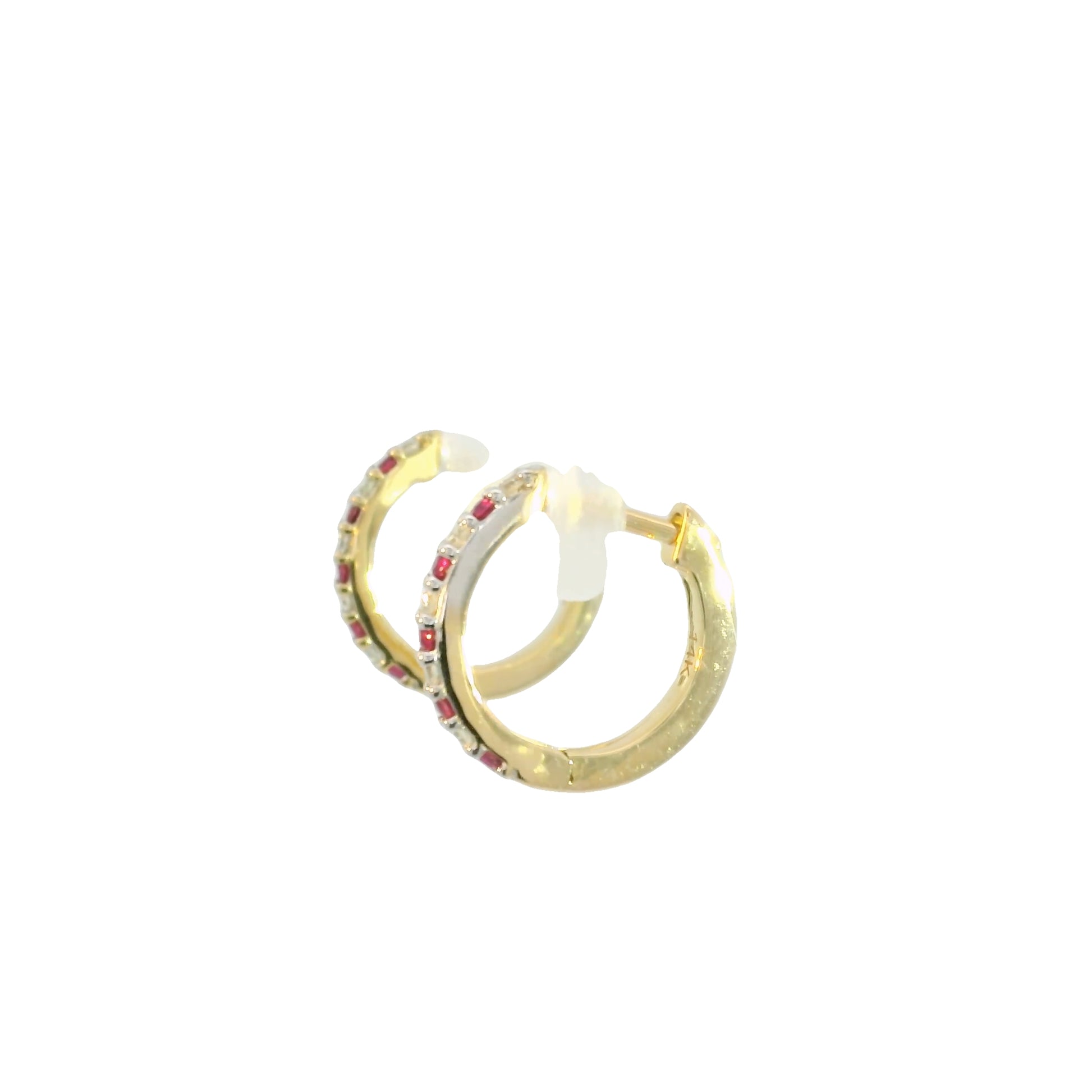Sleek, sparkly, and versatile — the Tinsley huggies are crafted in 14k yellow gold and showcase the luxurious hue of natural rubies and captivating sparkle of diamonds. Designed to shine from morning meetings to evening soirées.