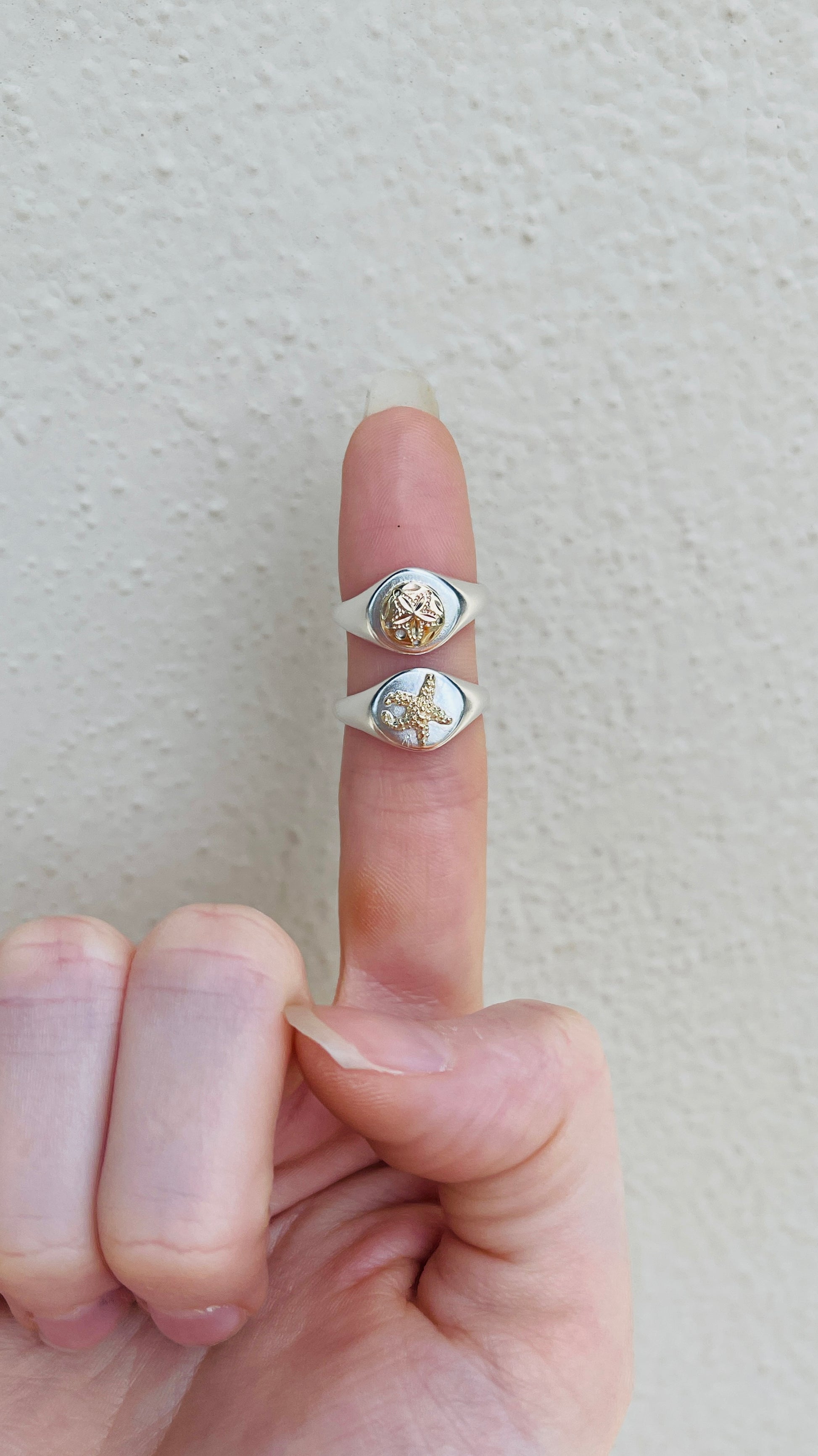 Handcrafted in luxurious 14 karat yellow gold and satiny sterling silver, the Tiny Treasures Signet Ring slips onto any finger favorably, the way the sea slips teeny tiny reminders of its presence along the sand, waiting for a lucky visitor to find, collect and cherish.