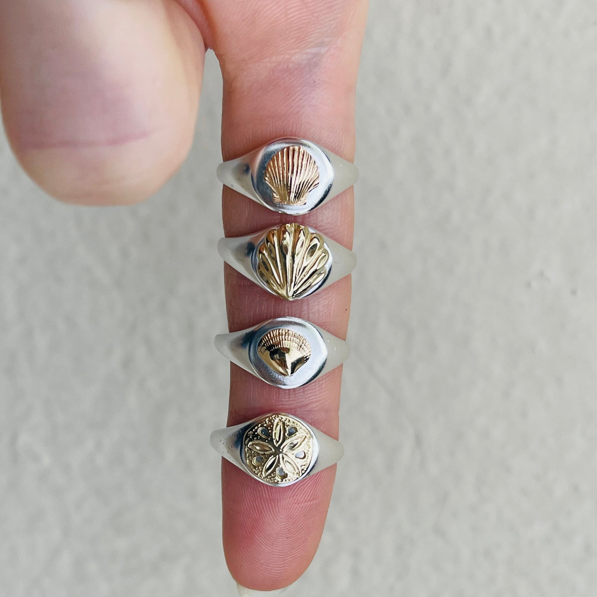 Featuring our micro shell, casted from local “baby shells” (as we’ve grown up calling them) collected on the 7 mile island, the Tiny Treasures Signet Ring it’s a subtle and wearable connection to the sea, the sand, and this magical place we call home.